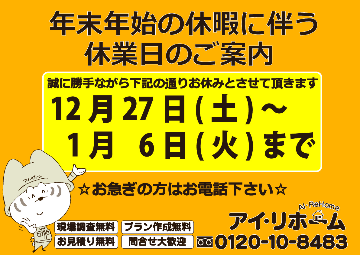 12月27日(土曜日)~ 1月6日(火曜日)まで